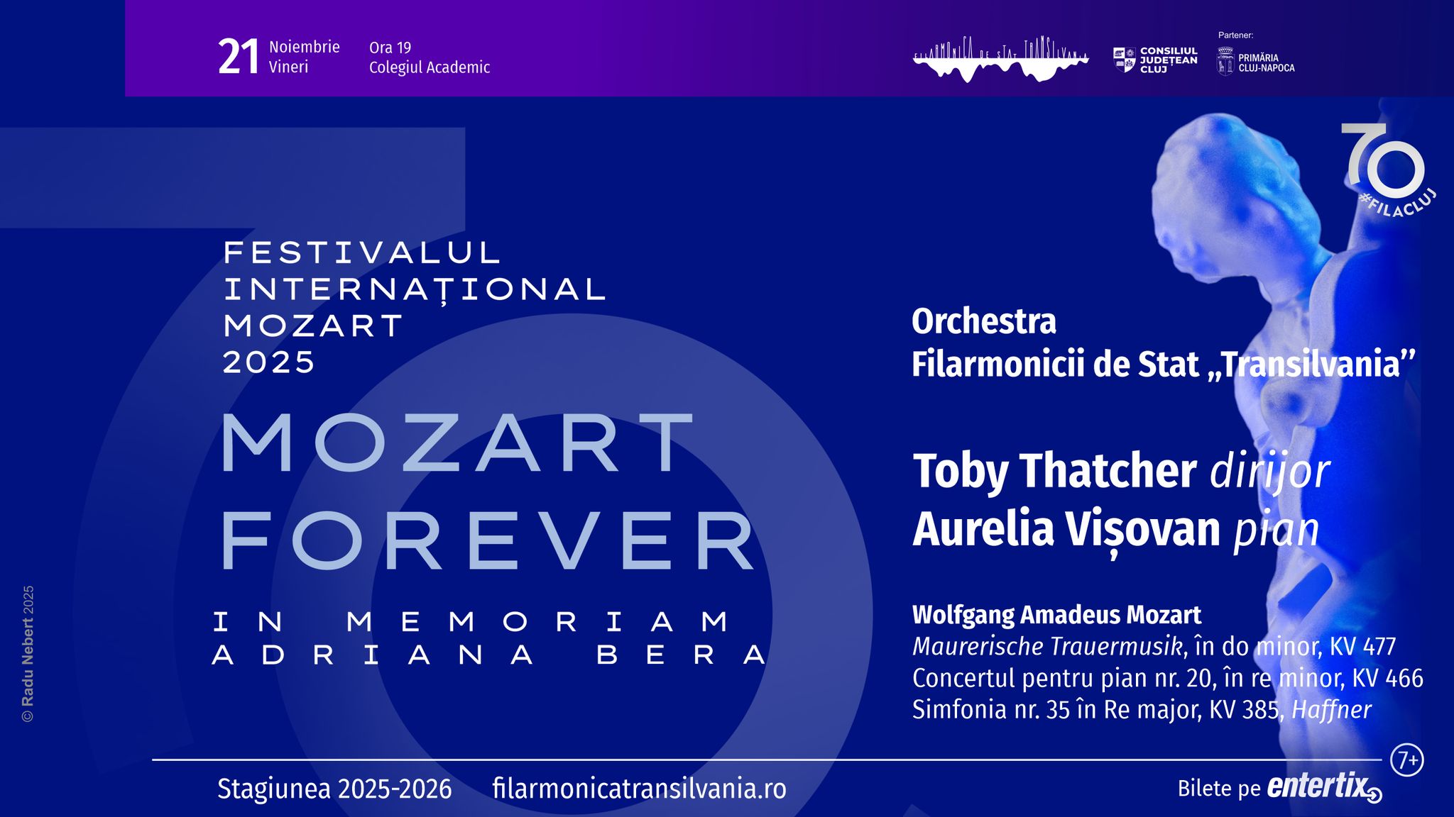 Concertul de deschidere a Festivalului Mozart din acest an se va desfășura sub semnul unei emoții imense și al unei recunoștințe care transcende scena. Întreaga ediție 2025 este un omagiu adus regretatei prof. univ. dr. Adriana Bera, personalitate marcantă a vieții muzicale clujene, pedagog de excepție și spirit formator pentru generații întregi de muzicieni. În amintirea ei și a impactului pe care l-a avut în calitate de Președinte al Societății Române Mozart, Festivalul își deschide porțile cu sentimentul unei continuități, a dăruirii, a disciplinei, a eleganței intelectuale și artistice pe…