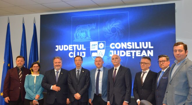 Vicepreședinții Consiliului Județean Cluj, Radu Rațiu și Vákár István, au primit vizita unei delegații oficiale, conduse de Excelența Sa Chen Feng, Ambasador al Republicii Populare Chineze în România. Oficialul străin a fost însoțit de reprezentanți ai Ambasadei, ai Camerei de Comerț și Industrie România-China (CCIRC) și ai CCIRC – Filiala Cluj. Întrevederea ce a avut loc la sediul forului administrativ județean a avut drept scop aprofundarea relațiilor de colaborare româno-chineze, impulsionarea schimburilor comerciale dintre cele două părți, precum și identificarea unor noi domenii de cooperare de interes reciproc. Ambasadorul Chen … Continuă lectura Ambasadorul Chinei în România, în vizită la Cluj