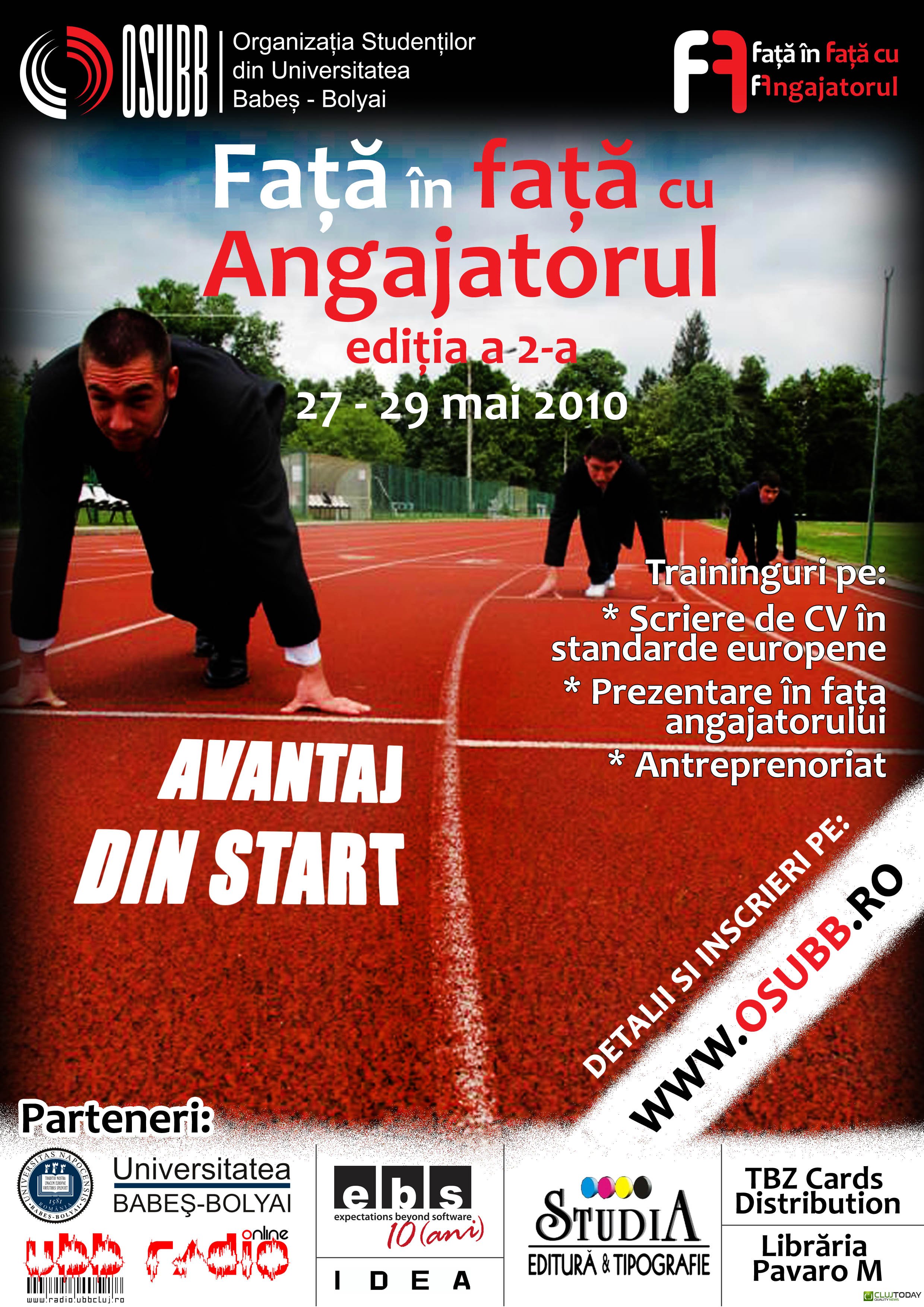 „Faţă în faţă cu angajatorul” este un proiect al Organizaţiei Studenţilor din UBB, care se află la ediţia a doua şi propune studenţilor un „avantaj din start” în câştigarea unui loc de muncă.