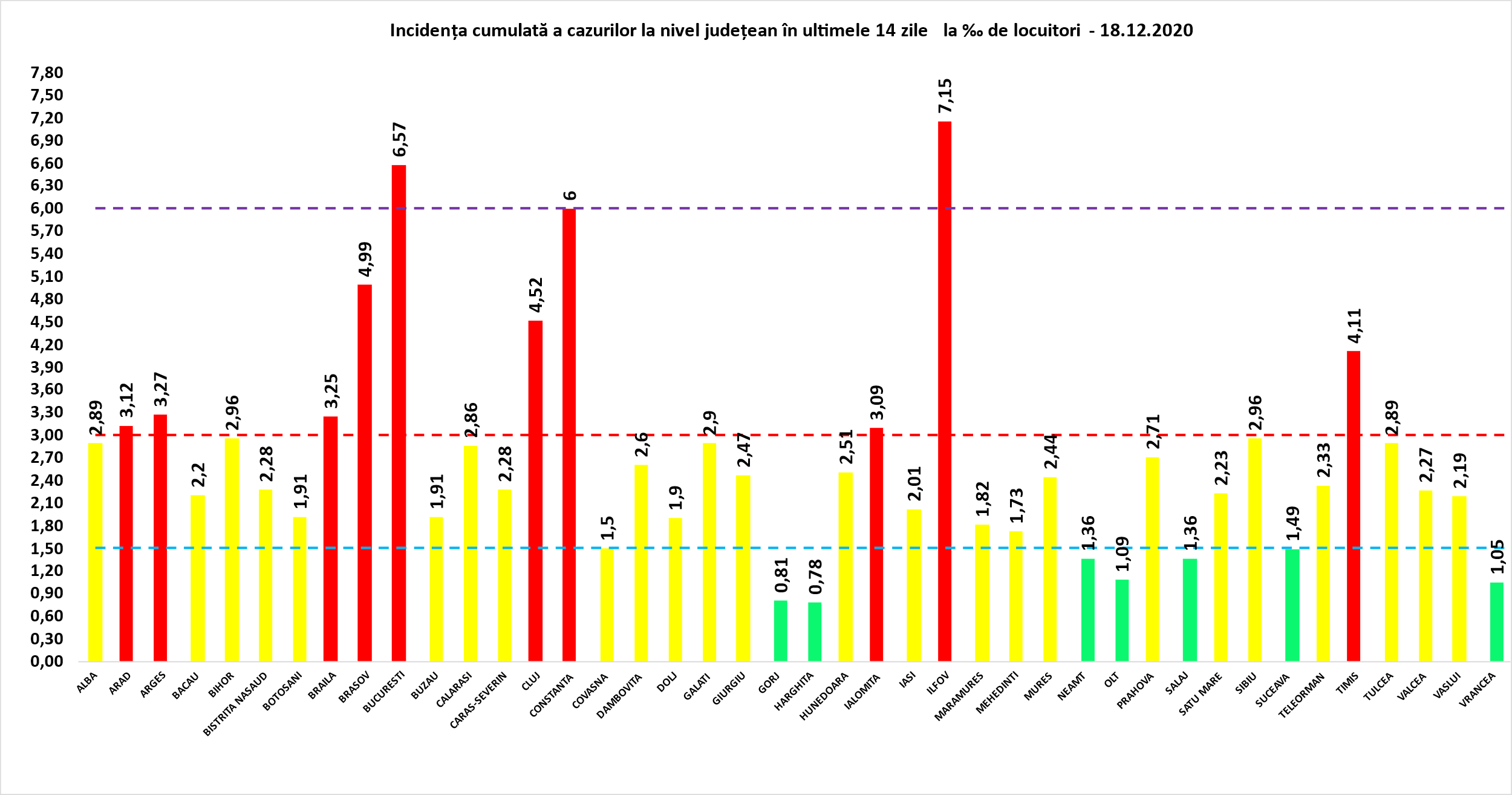 Până astăzi, 18 decembrie, pe teritoriul României, au fost confirmate 582.786 de cazuri de persoane infectate cu noul coronavirus (COVID – 19). În total, 484.948 de pacienți au fost declarați vindecați, iar 14.157 de persoane diagnosticate cu infecție cu SARS – CoV – 2 au decedat.