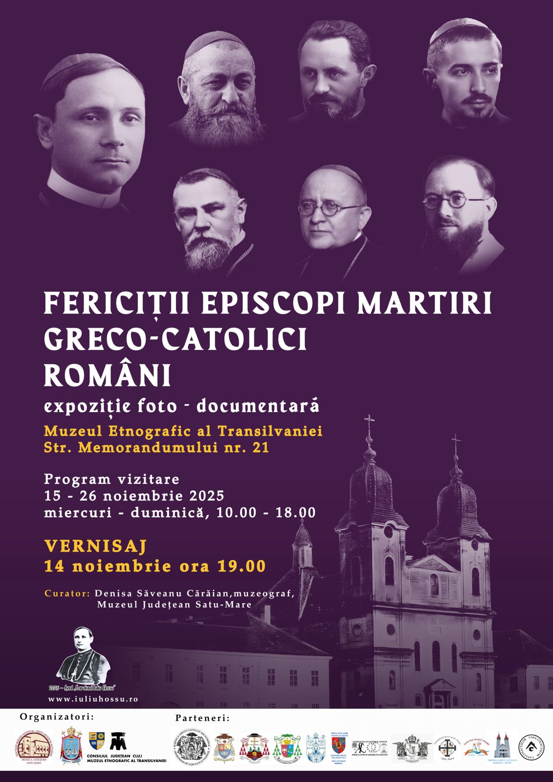 În perioada 15 – 26 noiembrie 2025, publicul clujean este invitat să viziteze expoziția foto-documentară „Fericiții Episcopi Martiri Greco-Catolici Români”, găzduită de Muzeul Etnografic al Transilvaniei (Str. Memorandumului nr. 21, Cluj-Napoca). Aceasta poate fi vizitată de miercuri până duminică, între orele 10:00 și 18:00. Expoziția aduce în prim-plan viața, mărturia și suferința celor șapte episcopi greco-catolici martiri beatificați de Papa Francisc la Blaj, în 2019: Valeriu Traian Frențiu, Iuliu Hossu, Alexandru Rusu, Ioan Bălan, Ioan Suciu, Vasile Aftenie și Tit Liviu Chinezu. Prin intermediul a peste 100 de piese, fotografii…