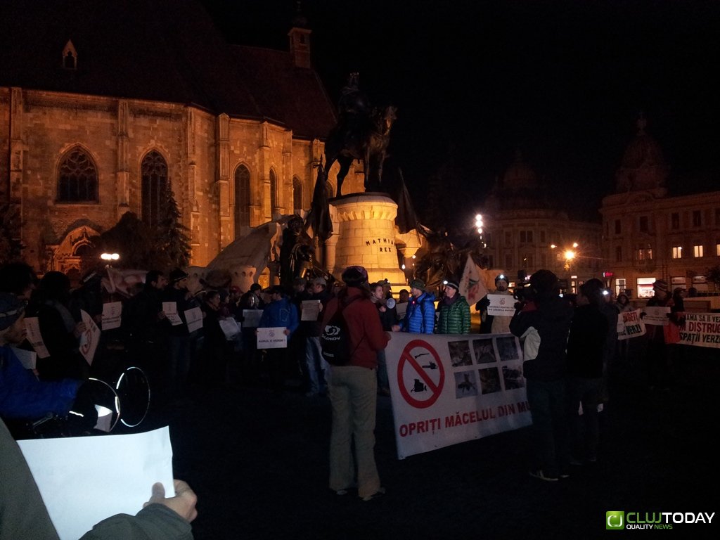 Aproximativ 100 de persoane, membri ori simpatizanți ai unor organizații ecologiste, au participat la un protest în centrul Clujului, în Piața Unirii. Ei au cerut oprirea tăierilor de păduri și a exploarărilor miniere din Munții Carpați.