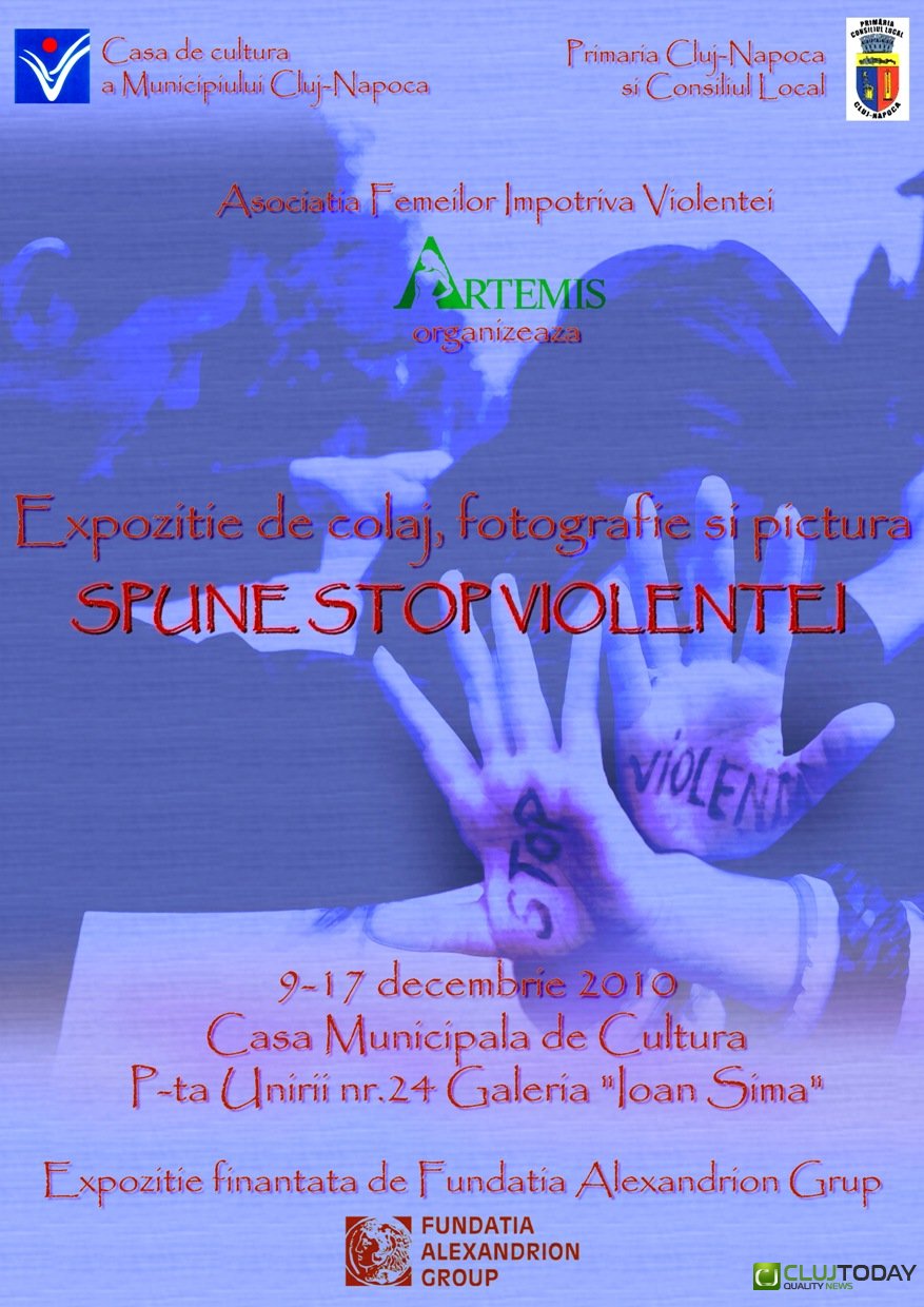 Asociaţia Femeilor Împotriva Violenţei-ARTEMIS organizează expoziţia “SPUNE STOP-VIOLENŢEI” în cadrul proiectului “Teatru-Un răspuns nou la violenţă”, proiect finanţat de Fundaţia Alexandrion Group.