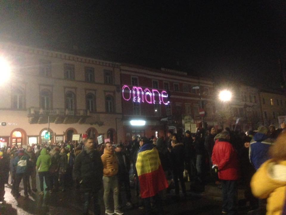 UPDATE ora 21.20: La Cluj numărul protestatarilor a ajuns la 50.000, potrivit autorităţilor, 70.000 potrivit participanţilor. Capul coloanei de protestatari este în Piaţa Unirii. Protestatarii ocupa strada Napoca, piaţa Lucian Blaga, str. Petru Maior, strada Memorandumului şi parţial bulevardul 21 Decembrie 1989. Coada coloanei se află în dreptul magazinului Sora.