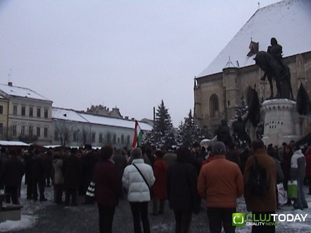 Aproximativ 150 de maghiari l-au serbat în Piața Unirii pe românul Matia Corvin. Fiul voievodului Transilvaniei, Iancu de Hunedoara, și nepot al cneazului Voicu de Hunedoara, Matia Corvin s-a născut la Cluj, acum 568 de ani. În ciuda opoziției unei părți însemnate a nobilimii maghiare, care i-a asasinat fratele, Matia Corvin a devenit regele al Ungariei, Boemiei și Croației și principe al Transilvaniei.Maghiarii clujeni s-au adunat ieri seară în Piața Unirii, cu coroane și jerbe de flori, pe care le-au depus pe soclul grupului statuar, care îl reprezintă pe Matia Corvin și pe patru dintre căpitanii săi. Ei au intonat imnul Ungariei și au participat la o ceremonie interreligioasă, oficiată de reprezentanți ai cultelor creștine romano-catolic, calvin și lutheran, precum și ai Bisericii Unitariene. Printre participanți s-a numărat ministrul Culturii și Patrimoniului Național, Hunor Kelemen, și consilierul prezidențial pentru minorități naționale, Peter Eckstein-Kovacs. Cei doi vor candida, la sfârșitul acestei săptămâni, pentru șefia UDMR. Alături de ei, la ceremonie au participat și vicepreședintele Consiliului Județean Cluj, Emoke Fekete, viceprimarul Clujului, Attila Laszlo, dar și consilieri locali și județeni din partea UDMR.