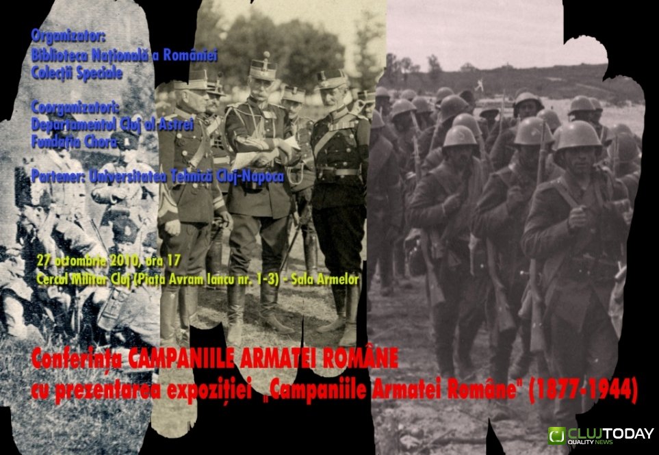 Biblioteca Naţională a României, Serviciul Colecţii Speciale, în colaborare cu Asociaţia ASTRA(Departamentul Cluj) şi Fundatia Chora, în parteneriat cu Universitatea Tehnică din Cluj-Napoca, organizează în data de 27 octombrie 2010, ora 17,00, în incinta Cercului Militar al României din Cluj (Piaţa Avram Iancu 1-3) Conferinţa „Campaniile Armatei Române”, manifestare care va fi completă cu o prezentare de expoziţie.Expoziţia „Campaniile Armatei Române” cuprinde estimativ 208 de documente istorice, fotografii şi fotocopii din patrimoniul Bibliotecii Naţionale a României, Colecţiile Speciale( Arhiva Istorică şi Cabinetul Foto ale ale BNR) şi relatează evenimentele în care Armata Română le-a petrecut în perioada anilor 1877-1944. Materialele expuse sunt distribuite în patru secţiuni şi marchează principalele momente ale luptei Armatei Române din perioada Războiului de Independenţă, Campania din Bulgaria de la 1913, Războiului de Reîntregire a Neamului (1916-1919) şi din cel de-al doilea război mondial.