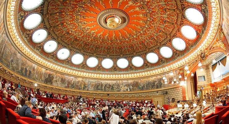 Această sală are un diametru de 28,5 metri, o înălţime de 16 metri, 794 de locuri şi o acustică impresionantă. Pe dinafară, Ateneul are forma unui templu grecesc, cu opt coloane ionice, replici ale celor din templul Erechteion din Atena.