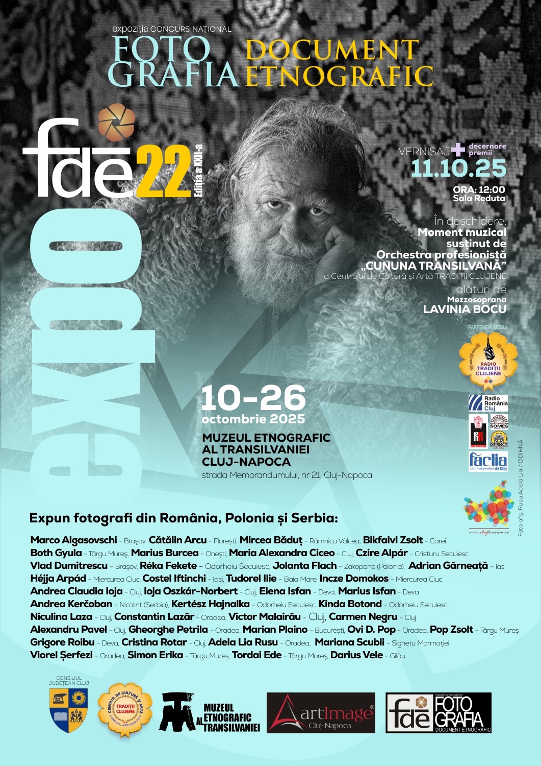 Între 10 și 26 octombrie 2025, publicul clujean este invitat să descopere universul satului românesc contemporan, prin intermediul expoziției concursului național Fotografia – Document Etnografic (F-DE).