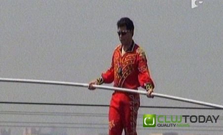 la înălţime, realizat de un chinez, specialist al mersului pe sârmă. Bărbatul a mers 200 de ore pe sârmă în decurs de 60 de zile. Aventura s-a desfăşurat deasupra celebrului stadion olimpic din Beijing, cunoscut sub numele „Cuib de Pasăre”.Nimic nu este prea greu sau imposibil pentru chinezul supranumit „Prinţul mersului pe sârmă”. Nici măcar cele 60 de zile pe care le-a petrecut izolat pe acoperişul unui stadion din China, singur, vizitat doar o dată pe zi de soţia care îi aducea alimente şi apă. Avea un scop bine stabilit.