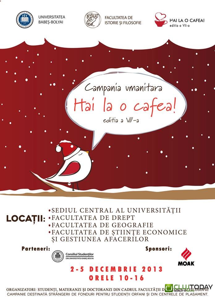 „Prin vânzarea unui pahar de cafea cu 1, 50 lei sau a unui ceai cu doar 1 leu încercăm să producem o surpriză plăcută studenţilor orfani şi din centrele de plasament, care studiază în cadrul UBB, cu ocazia sărbătorilor de iarnă. Initiativa noastră a început ca un mic proiect în 2007, însă succesul de care s-a bucurat încă de la prima ediţie, ne-a făcut să continuăm campania şi în anii care au urmat. Sărbătorile ne bat iar la uşă şi suntem pregătiţi să facem şi în 2013 câţiva colegi fericiţi”, susţin organizatorii.