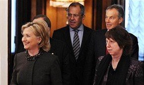 Cei „patru” actori mondiali pentru Orientul Mijlociu au pledat pentru relansarea dialogului israeliano-palestinian, în pofida contextului tensionat generat de negocierile eşuate şi de o răcire a relaţiilor între Israel şi Statele Unite ale Americii. Iniţial, reuniunea de la Moscova între reprezentanţi ai ONU, UE, Rusiei şi SUA trebuia să se axeze pe sprijinul acordat de membrii Cvartetului negocierilor indirecte între părţile implicate, propuse de Statele Unite ale Americii. Anunţul privind construcţia a 1.600 de noi locuinţe evreieşti în Ierusalimul de Est /zona arabă a oraşului cucerită şi anexată de Israel în 1967/ a blocat iniţiativa americană.