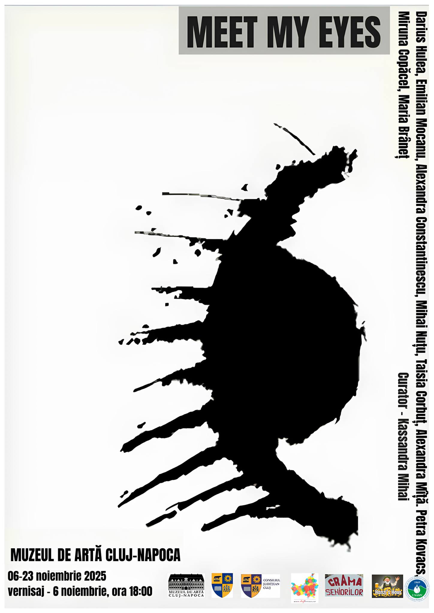Muzeul de Artă Cluj-Napoca invită publicul să viziteze expoziția de sculptură „Meet my eyes”, în care vor expune nouă artiști studenți și absolvenți ai Universității de Artă și Design Cluj-Napoca: Darius Hulea, Emilian Mocanu, Alexandra Constantinescu, Mihai Nuțu, Taisia Corbuț, Alexandra Mîță, Petra Kovacs, Miruna Copăcel și Maria Brâneț. Expoziția este îngrijită de Kassandra Mihai, curator și doctorandă în studii vizuale în cadrul aceleiași universități. Expoziția „Meet my eyes” va fi deschisă în perioada 6 – 23 noiembrie 2025, la Muzeul de Artă din Cluj-Napoca. Deschiderea oficială va avea loc…