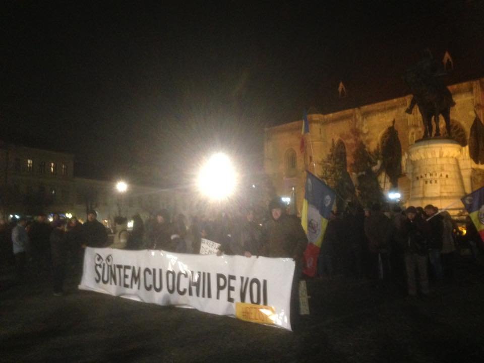 Aproximativ 3.000 de oameni au ieşit din nou în stradă în centrul Clujului pentru a cere demisia Guvernului. Ei s-au strâns în Piaţa Unirii, apoi au pornit în marş pe străzile oraşului.