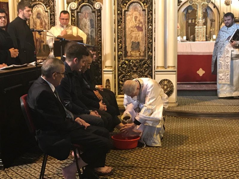 Episcopul greco-catolic de Cluj-Gherla, PS Florentin Crihălmeanu, a oficiat o slujbă specială de Joia Mare. După liturghia oficiată în catedrala Schimbarea la Faţă, el a spălat şi a sărutat picioarele a 12 studenţi la Teologie.