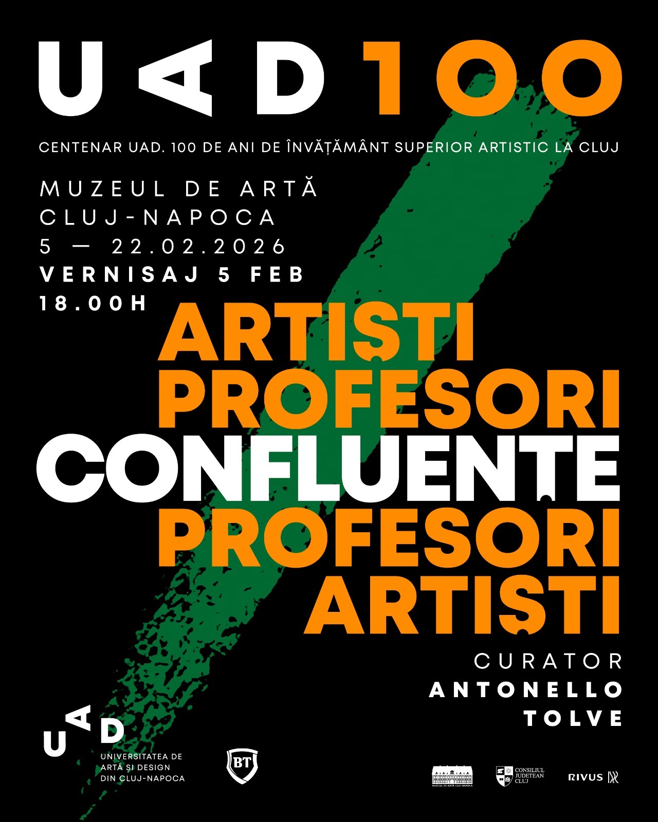 Realizată în parteneriat cu Muzeul de Artă Cluj-Napoca (MACN), expoziția „Confluențe. Artiști-profesori – profesori-artiști” reprezintă un proces amplu ce reunește peste șaptezeci de lucrări ale reprezentanților instituției clujene de învățământ superior artistic, fiind prima manifestare expozițională a anului 2026, ce face parte din calendarul de evenimente al programului „Centenar UAD. O sută de ani de învățământ superior artistic la Cluj” care se va derula pe tot parcursul anului universitar 2025-2026. Expoziția va putea fi vizita în perioada 05 – 22 februarie 2026, vernisajul fiind programat joi, februarie, în prezența reprezentanților…