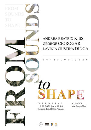 Expoziția de pictură și sculptură „From Sounds to Shape”, în care vor expune trei artiști din Cluj-Napoca, București și Târgu Mureș: Andreea Beatrix Kiss, Lavinia Cristina Dinca și George Ciorogar va fi găzduită la Muzeul de Artă Cluj-Napoca, în perioada 16 – 25 ianuarie 2026.