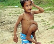Băiatul nu a fost supus niciodată unei radiografii. Părinţii micuţului indian câştigă aproximativ un euro pe zi şi nu-şi permit să-l ducă pe băiat la medic.