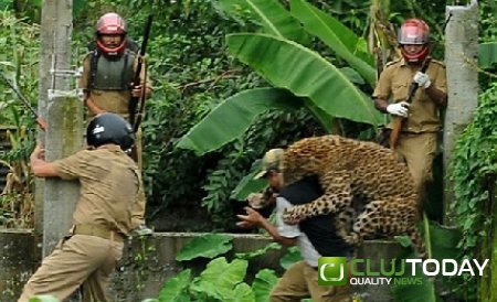 Un leopard, fotografiat în timp ce sărea la gâtul unui bărbat 20 iulie 2011 Ioan.Ciorca Leopardul a fost împuşcat mortal. Până să ajungă în acest sat, fiara a mai atacat alte trei persoane.