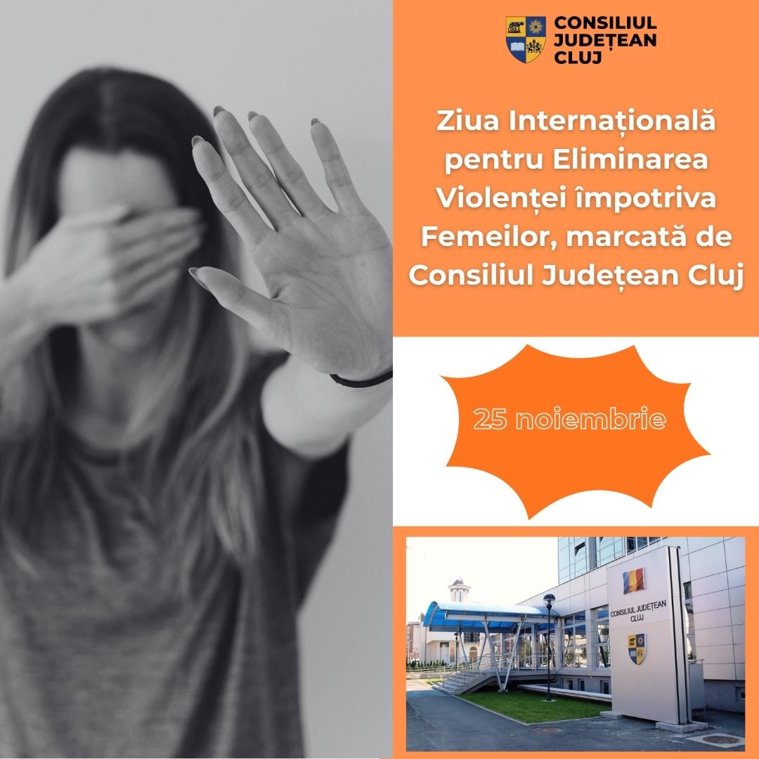 Consiliul Județean Cluj se alătură și în acest an demersurilor prin intermediul cărora se marchează, în data de 25 noiembrie, Ziua Internațională pentru Eliminarea Violenței împotriva Femeilor.